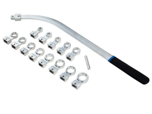 Klucz przeznaczony do napinacza paska wielorowkowego we wszystkich typowych samochodach. Bardzo wąskie i długie ramię klucza, które umożliwia wykorzystanie klucza w trudnodostępnych miejscach. Konstrukcja klucza zapewnia możliwość pracy w trudno dostępnych miejscach przy małym nakładzie siły. Zestaw przeznaczony do regulacji napinaczy paska rozrządu w większości modeli samochodów. Praktyczne opakowanie