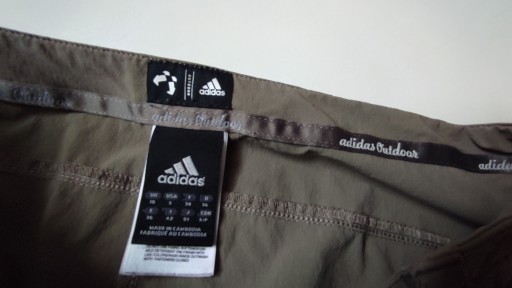 Witam. Jak nowe spodnie turystyczne ADIDAS OUTDOOR w stanie 6, ( skala 6-1) . Dwie kieszenie z przodu na zamki, wyszyte logo przód , regulowane-podciągane do góry nogawki, rozmiar z metki UK-1, F-38, D-36, USA-S,. Nogawki po bokach z zamkami, szlufki w pasie, materiał cieńszy-letni-85% poliamid +15% elastan.