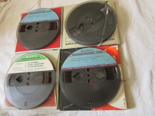 Przedmiotem aukcji sa 4 sztuk tasm szpulowych marki Sony Demonstracyjnych o średnicy 18 cm.Tasmy w bardzo dobrym stanie.Przechowywane w ocieplanym mieszkaniu.Podana cena za sztukę.Na innych aukcjach posiadam także inne taśmy różnych firm w różnych rozmiarach,wystarczy kliknąć"Inne przedmioty sprzedającego"