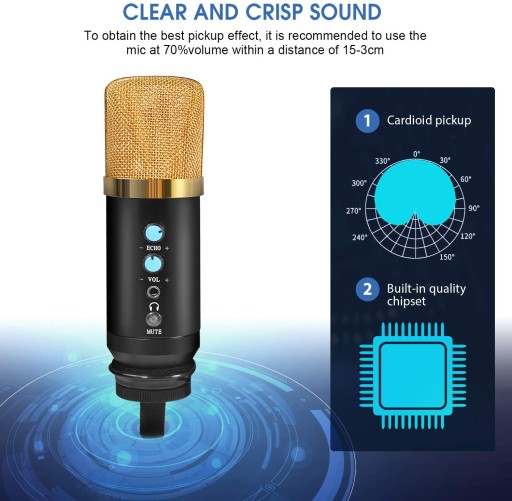 - 【Czysta jakość dźwięku】Kardioidalna charakterystyka kierunkowości i pasmo przenoszenia 30Hz-20kHz zapewniają czysty i wierny wokal, bez zakłóceń, co pozwala swobodnie śpiewać, rozmawiać itp.