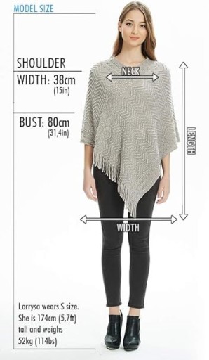- rozmiar uniwersany , To oversize'owe ponczo zostało zaprojektowane tak, aby pasowało na większość kobiet.