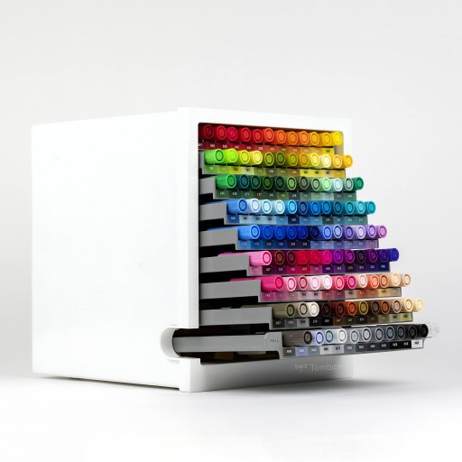 - punkt znaku wypunktowania: Poziomy pojemnik do przechowywania dwustronnych długopisów, takich jak pisaki Tombow ABT Dual Brush Pens lub ABT PRO, Miejsce na maksymalnie 108 długopisów, Przejrzysty i łatwy dostęp dzięki wysuwanym półkom, Nie musisz się obawiać wysychania jednej strony długopisu – poziome przechowywanie zapewnia równomierny przepływ atramentu w przypadku dwustronnych długopisów, Łącznie z zadrukowanymi kolorowymi etykietami do organizacji markerów Tombow ABT Dual Brush Pens lub markerów Tombow ABT PRO i kodu QR do pobrania pustych etykiet do spersonalizowanej organizacji