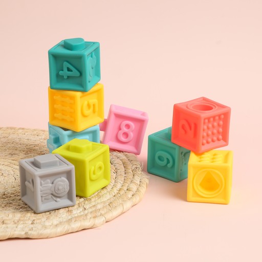Zestaw 9 miękkich kolorowych kostek sensorycznych z bonusem.