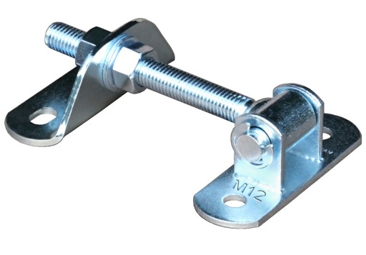 Zawias stalowy regulowany M12 doposażony w płytkę stalową kątową 90x30 o grubości 3 mm.