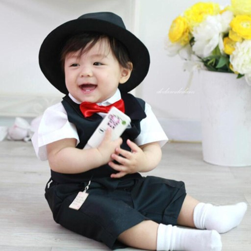 10 szt. Klasyczna, wstępnie zawiązana muszka, formalny, jednolity smoking dla dzieci, czerwony