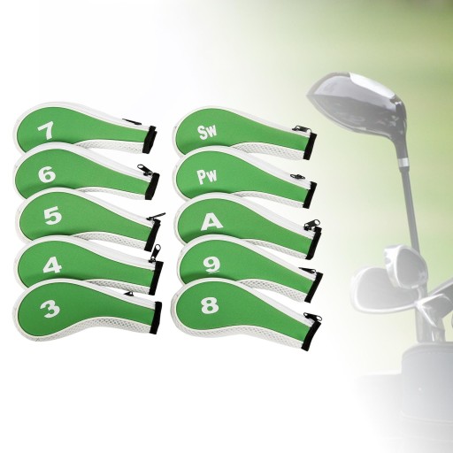 10 szt. Golf Iron Headcover Set Golf Club Head Cover Putter do uprawiania sportów na świeżym powietrzu w kolorze zielonym i białym