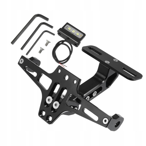 wysoka jakość Materiał:Uchwyt tablicy rejestracyjnej motocykla wykorzystuje wysokiej jakości stop aluminium, lekki, mocny i trwały, można go regulować pod różnymi kątami poziomymi od podłoża, aby zapewnić dobrą widoczność na drodze.