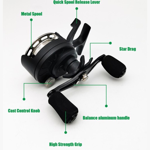 [Gładki kołowrotek do łowienia pod lodem]: Ten kołowrotek do łowienia pod lodem ma metalową konstrukcję i jest odporny na rdzę. Jest lekki, ma pustą konstrukcję i oferuje imponującą siłę hamowania 8 kg.