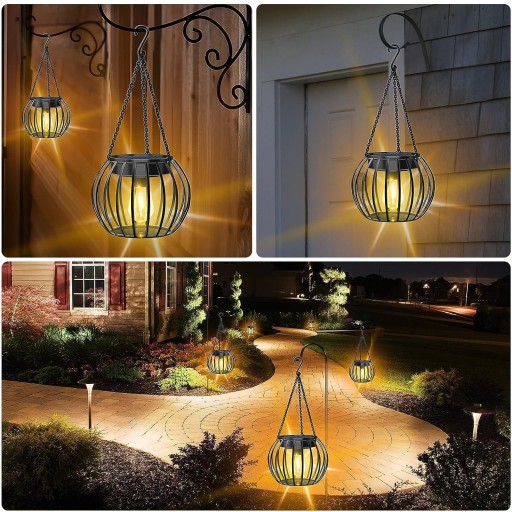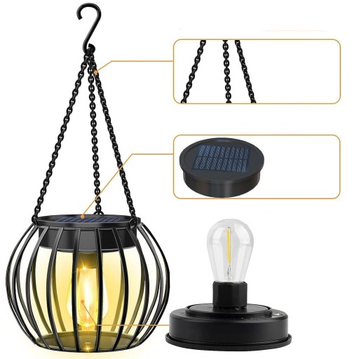 - Zewnętrzne wiszące lampy solarne są wyposażone w przezroczyste żarówki LED, które wytwarzają kojące i harmonijne światło, dzięki czemu możesz cieszyć się oświetleniem przez całą noc.