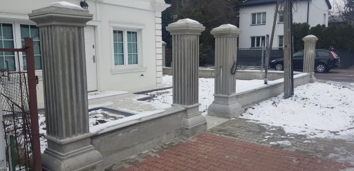 Dzięki temu że elementy, czyli słupy i murki dolne są jednorodną bryłą, montaż jest bardzo szybki i nikomu nie powinien sprawić problemu, w porównaniu np. z elementami modułowymi, gdzie każdy element należy oddzielnie zalewać i spoinować. Wystarczy jedynie wylać miejscowe stopy . Na tych że stopach ustawiamy słupy i murki, zalewając jedynie środek słupka, łączenia należy zasylikonować uszczelniaczem dekarskim, a daszki przykleić na klej mrozoodporny