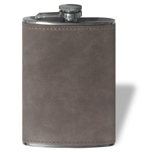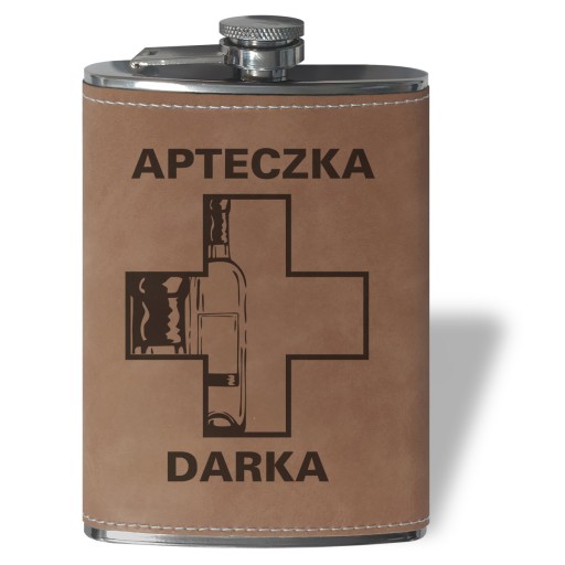 Estetyczna i luksusowa piersiówka ze stali nierdzewnej, w ekoskórze z dowolnym nadrukiem.