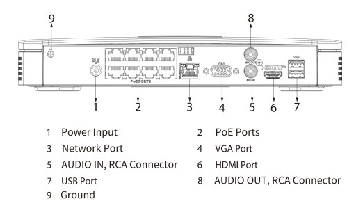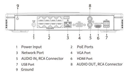 - Wbudowany switch PoE 8 portów umożliwia zasilanie kamer IP za pomocą kabla Ethernet, eliminując potrzebę stosowania dodatkowych zasilaczy i upraszczając instalację całego systemu.