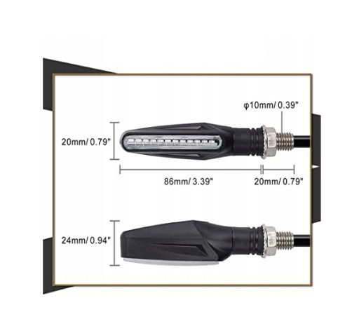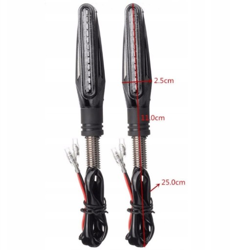 Typ wtyczki: czerwony przewód dodatni, czarny przewód ujemny; rozmiar lampy: 11x2.5 cm, długość kabla: 27 cm, łatwy do zainstalowania, instalacja bezpośrednio do oryginalnego kierunkowskazu