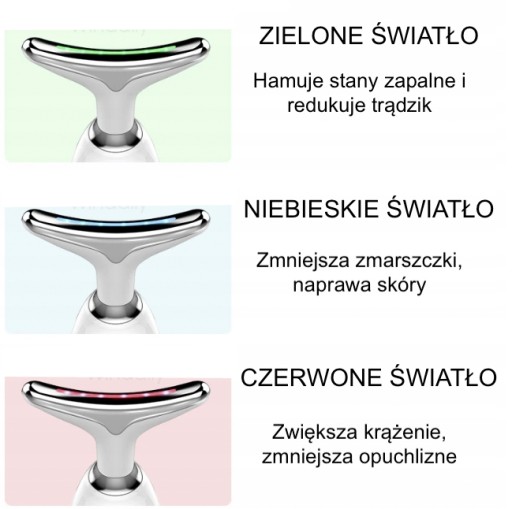 - FALA ŚWIATŁA ZIELONEGO (uspokaja, wygładza skórę, reguluje przepływ limfy, ułatwia drenaż dzięki czemu zapobiega obrzękom twarzy)