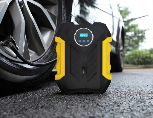 KOMPRESOR / SAMOCHODOWY / SPRĘŻARKA / POMPKA >35l/min Z LATARKĄ I WYŚWIETLACZEM LCD z ZESTAWEM AKCESORIÓW