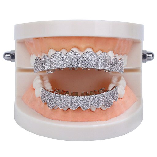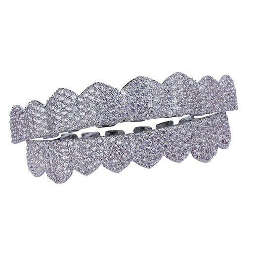 Kryształowa cyrkonia AAA 8 górnych zębów i 8 dolnych zębów Hip-hopowy grill na usta w kolorze srebrnym