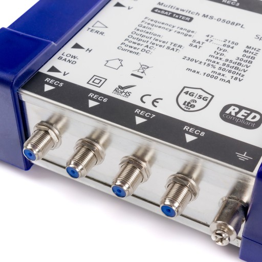 Specyfikacja techniczna multiswitcha 5/8Liczba wejść: 4 SAT, 1 TER