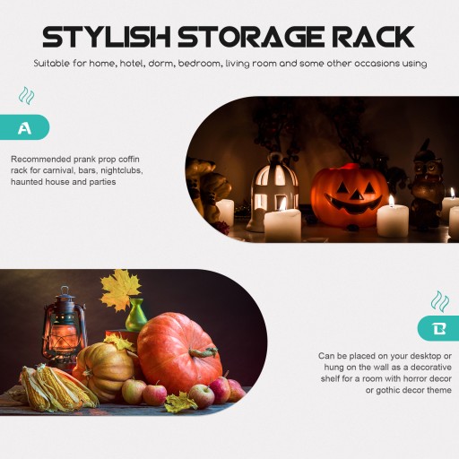 Można postawić na biurku lub zawiesić na ścianie jako ozdobną półkę do pokoju o wystroju grozy lub gotyckim.