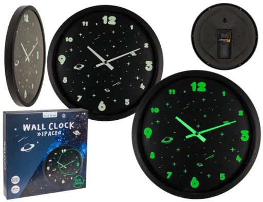 Zegar Ścienny Fluorescencyjny z Motywem Kosmosu - Świeci w Ciemności
