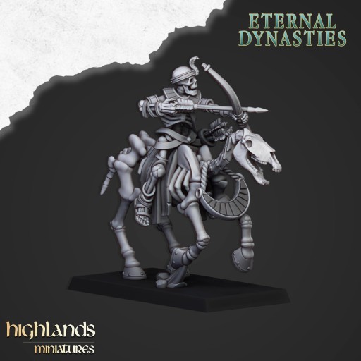 Przedmiotem sprzedaży jest zestaw modeli Ancient Skeletal Cavalry with Spears and Bows od Highlands Miniatures.