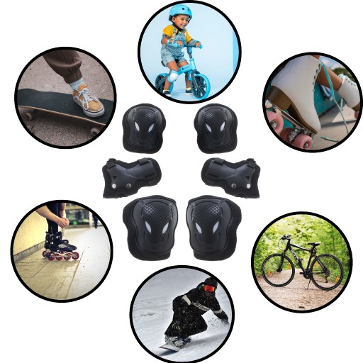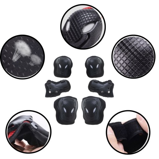 W zestawie znajdują się ochraniacze na nadgarstki, łokcie i kolana – zapewnia to doskonałe zabezpieczenie wszystkich najbardziej narażonych na uszkodzenia stawów. Dzięki temu kompletnemu zestawowi można być pewnym swojego bezpieczeństwa.