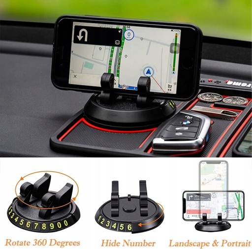 - Uchwyt na telefon komórkowy na macie antypoślizgowej może być obracany o 360 stopni. Niezależnie od tego, czy jest to ekran poziomy czy pionowy, można go dowolnie dostosować do różnych kątów widzenia.