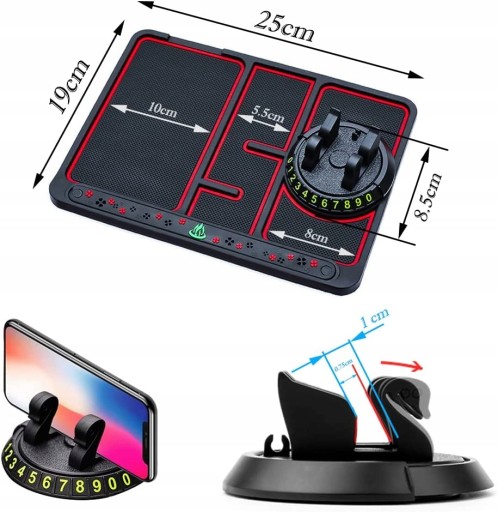 1 x Antypoślizgowa podkładka pod telefon dla samochodu 4 w 1