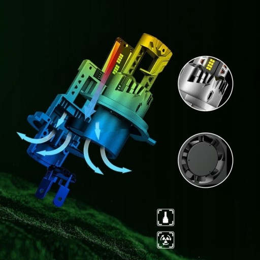 ✅Konstrukcja z aluminiową obudową i elektronicznym radiatorem aktywnym z turbo wentylatorem zapewnia skuteczne chłodzenie żarówek LED. Dzięki temu osiągają one wysoką wydajność i są odporne na przegrzewanie.