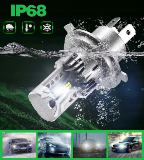 H4 СВЕТОДИОДНАЯ ЛАМПА CANBUS 1 ДО 1 МОЩНЫЙ БЕЛЫЙ СВЕТ 6500K 10000LM 1 ШТ.