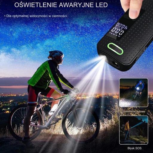 Dodatkowo, funkcje awaryjnego oświetlenia oraz wskaźnik mocy sprawiają, że pompa ta jest niezastąpionym narzędziem w podróży, gwarantując bezpieczeństwo i wygodę podczas każdej sytuacji drogowej.