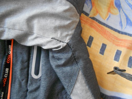 Kurtka jest w dobrym stanie. Ma zszytą lewą pachę (ostatnie zdjęcie), czego w normalnym użytkowaniu nie widać.