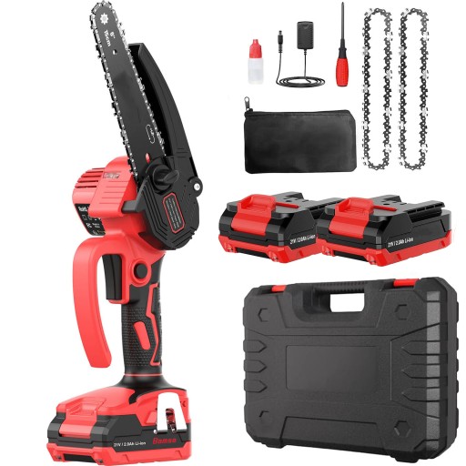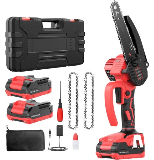 📦📦 W zestawie znajduje się wszystko, czego potrzebujesz: 1x elektryczna pilarka łańcuchowa, 2x akumulatory, 2x łańcuchy, 1x wkrętak, 1x pusta butelka, 1x torba do przechowywania, 1x plastikowe pudełko, 1x ładowarka zgodna z europejskimi standardami. Wiele akcesoriów w jednym, aby spełnić wszystkie Twoje potrzeby.