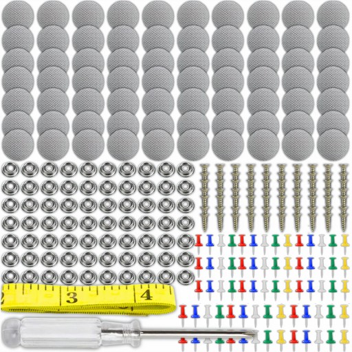 ✔️Wszystko, Czego Potrzebujesz w Jednym Zestawie✔️Zestaw zawiera 70 szt. szarych nitów naprawczych, 70 szt. kolorowych pinezek, 1 śrubokręt i 1 centymetr - wszystkie niezbędne elementy do naprawy.