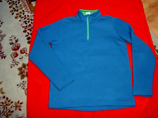 *** Witam *** Na tej aukcji sprzedaję po moim synku CIEPŁĄ POLAROWĄ BLUZĘ ze stójką w przepięknym kolorze morskim – POLO na krótki zamek firmy DECATHLON. Rozmiar: / na metce 140 (ale sprawdź wymiary podane niżej) , Materiał : 100% poliester. JAK NOWA