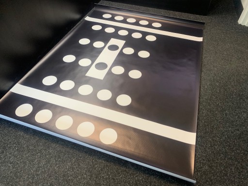 Maty są wykonane ze specjalnego wytrzymałego i nierozciągliwego materiału, jest to PCV wzmacniane włóknem szklanym. Maty są matowe co ważne, bo nie odbija się światło podczas kalibracji. Można rozwijać przy każdej kalibracji lub podkleić na sklejce na stałe.