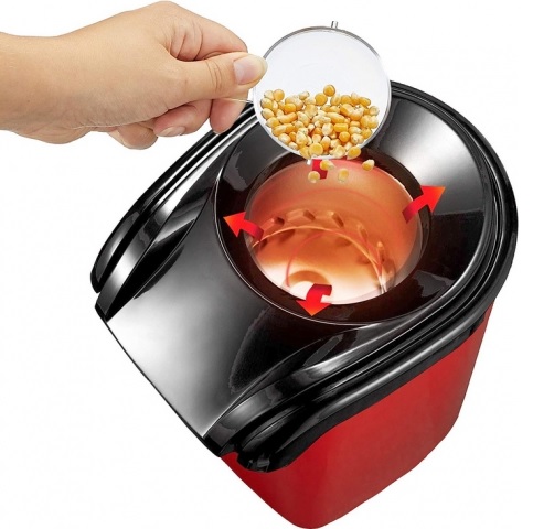 Większość urządzeń przygotowujących popcorn potrzebuje tłuszczu aby kukurydza nagrzała się a popcorn zaczął się prażyć. Maszyna do popcornu z ofercie nie potrzebuje tłuszczu, ponieważ do prażenia używa ciepłego powietrza, które wprawia kukurydzę w stan prażenia. To idealne rozwiązanie dla osób, które dbają o linię a jednocześnie mają słabość do popcornu.