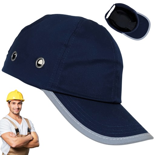 ⭐️CZAPKOKASK hełm BUMPCAP LEKKI kask OCHRONNY BHP czapka ROBOCZA WENTYLOWANA przemysłowa z ODBLASKIEM rozmiar UNIWERSALNY z REGULACJĄ za pomocą rzepa 58-62 cm model BUMPCAP z odblaskiem w kolorze ⭐️GRANATOWYM⭐️