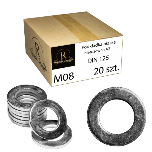 Podkładka M8 Płaska DIN 125 Nierdzewna A2 20 Sztuk