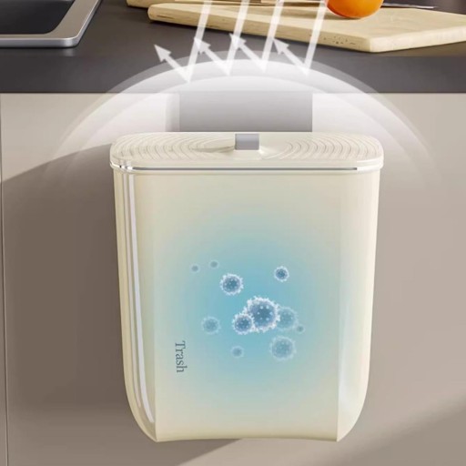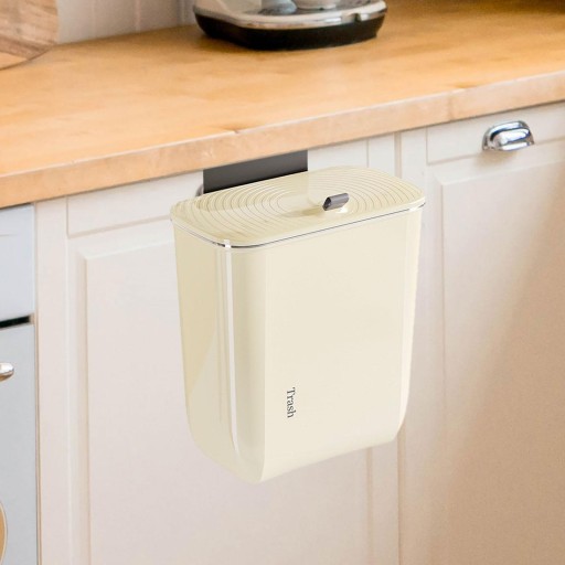 [KOSZ NA ŚMIECI KUCHENNE] Kuchenny kosz na śmieci można z łatwością zawiesić nad drzwiami szafki, aby wyrzucać obierki warzywne, nie trzeba się schylać, dzięki czemu przestrzeń jest czysta, a kuchnia schludna.