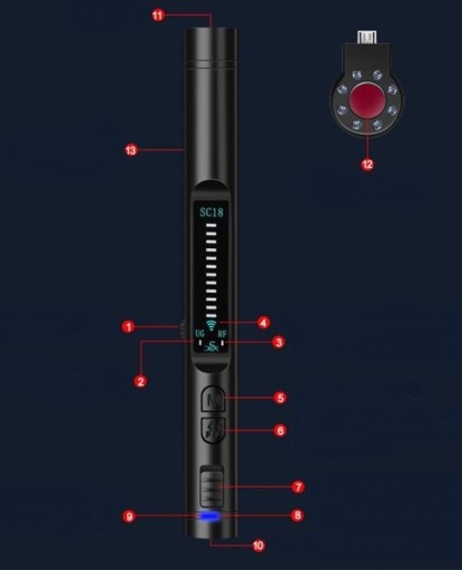 To precyzyjny i skuteczny wykrywacz prawie wszystkich dostępnych na rynku podsłuchów, kamer bezprzewodowych, podsłuchów GSM oraz lokalizatorów GPS. Jest niezwykle poręczny, kompaktowy i skuteczny w wykrywaniu podsłuchów, lokalizatorów GPS, kamer bezprzewodowych i innych urządzeń.