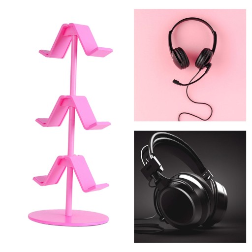Держатель подставки для игрового контроллера Простой в установке трехуровневый держатель для наушников, розовый