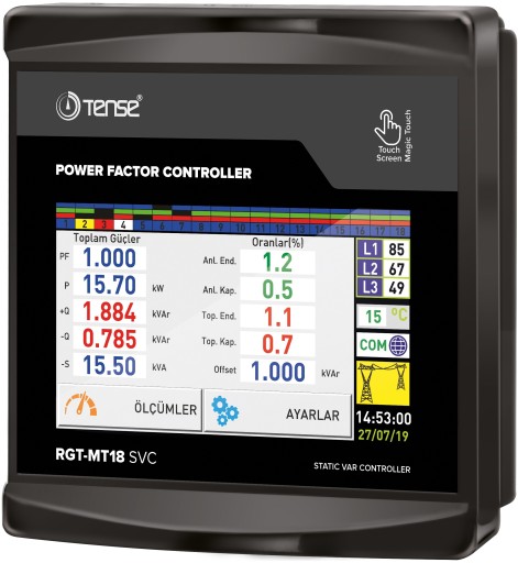 Regulator mocy biernej RGT-MT18 z dotykowym kolorowym wyświetlaczem do pełnej automatyzacji procesów zachodzących podczas kompensacji mocy biernej