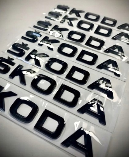 Эмблема с шаблоном, значком, логотипом и надписью SKODA сзади, черный глянцевый