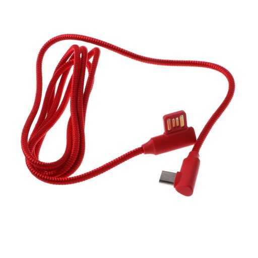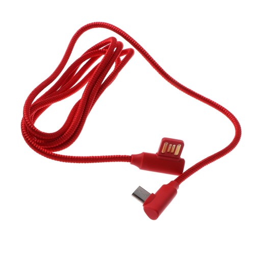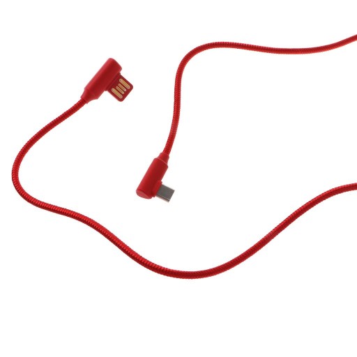 Kabel Micro USB do szybkiej transmisji danych, pleciony pod kątem 90 stopni, kątowy, czerwony