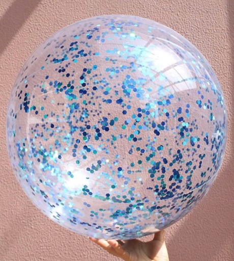 ♦️ Nasza piłka plażowa wypełniona jest brokatem, który mieni się w słońcu, tworząc niesamowity efekt wizualny. Przyciąga wzrok i sprawia, że każda zabawa na plaży lub w basenie staje się wyjątkowa.