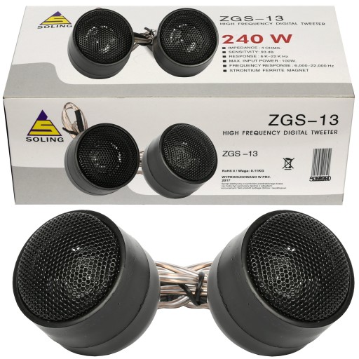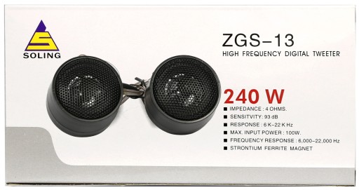 Porządne wysoko-tonowe głośniki elektrodynamiczne z magnesem i wbudowaną zwrotnicą na kablu. Grają wysokim, soczystym sopranem. Można je podłączyć bezpośrednio pod radio lub równolegle do głośnika basowego bez obawy spalenia. Spełniają swoją funkcję pod samym radiem ale dzięki wysokiej mocy można je podłączyć pod wzmacniacz o mocy do 100W RMS.