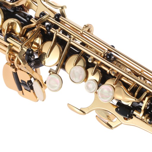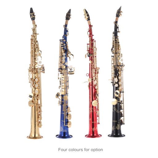 B płaski prosty saksofon sopranowy, wykonany z wysokiej jakości mosiądzu.