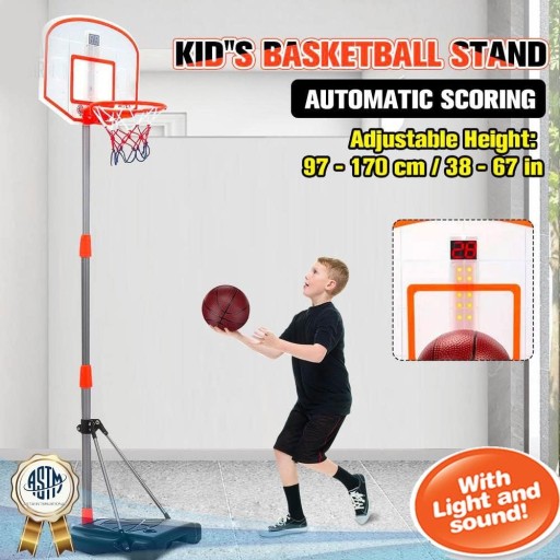 ОТДЕЛЬНО СТОЯЩАЯ ДЕТСКАЯ БАСКЕТБОЛЬНАЯ КОРЗИНА, РЕГУЛИРУЕМАЯ, 100-170 см, СВЕТОДИОДНАЯ СТОЙКА