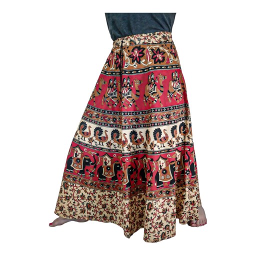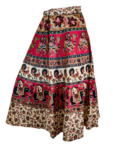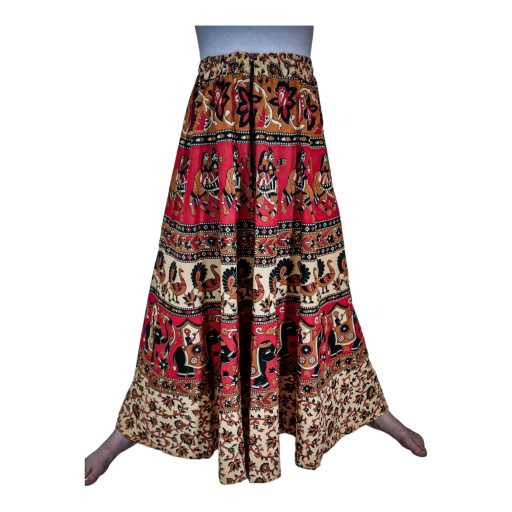 ДЛИННАЯ РЕЗИНОВАЯ ЮБКА ИЗ ИНДИИ РАЗНОЦВЕТНОГО ХЛОПКА слон-верблюд-павлин