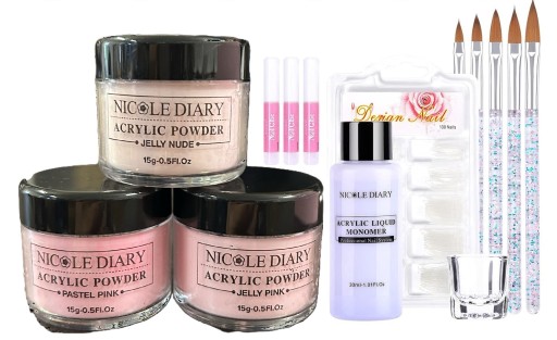 Zestaw startowy pudru akrylowego – Zestaw pudru i płynu akrylowego NICOLE DIARY zawiera puder akrylowy w 3 kolorach jelly nude, pastelowy róż i jelly różowy oraz niezbędny zestaw. Idealny do french, paznokci akrylowych, rzeźbionych kwiatów, przedłużania paznokci i trwałych dekoracji paznokci
